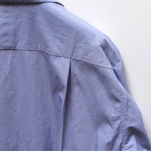 背面は2枚の生地を接いで縫い合わせたスプリットヨークで、肩まわりを動かしやすくするための背面のサイドプリーツ等々、【MOJITO】ならではの細やかなつくりのシャツです。